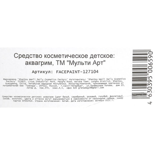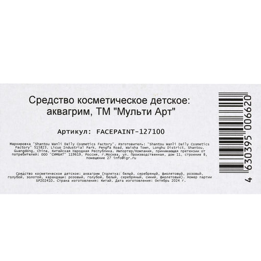 Аквагрим набор 6 цветов МУЛЬТИ АРТ в кор.48шт