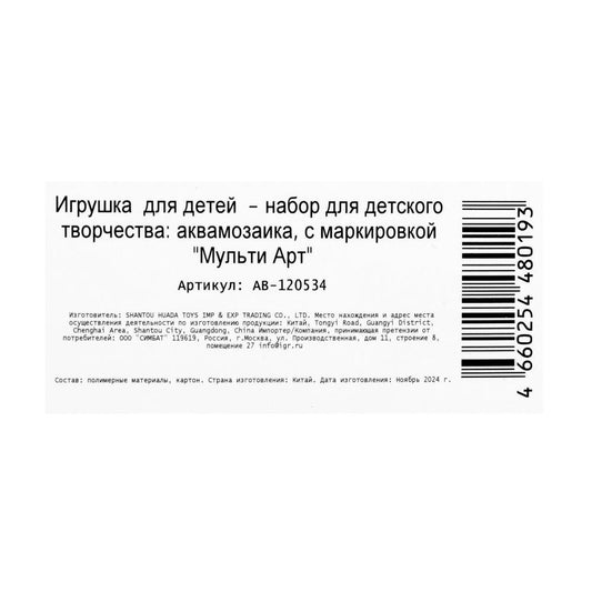 Аквамозаика 100 бусин кит МУЛЬТИ АРТ в кор.48шт