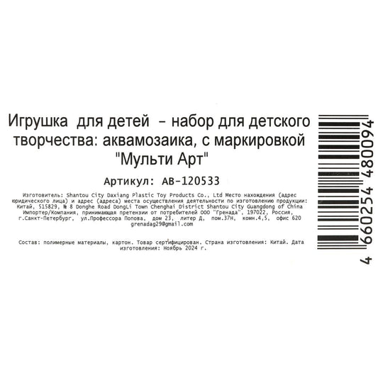 Аквамозаика 100 бусин стич МУЛЬТИ АРТ в кор.48шт
