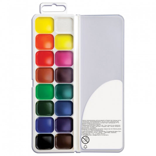 Акварель медовая ЛЮКС 16 цв., пласт. упак. в картон. короб., без кисти