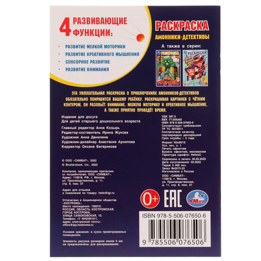 Амонники-детективы. Раскраска. 145х210мм. Скрепка. 16 стр. Умка в кор.50шт