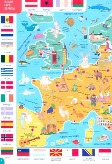 АТЛАС МИРА. ФЛАГИ И СТРАНЫ с наклейками, скреп. мелов.бум. Уф-лак 195х275
