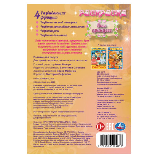 C'est une princesse. Раскраска. 145х210 mm. Скрепка. 16 pièces. Умка в кор.50шт