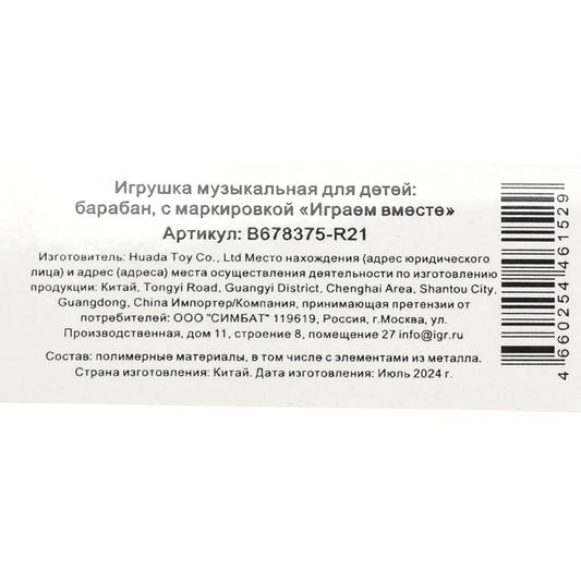 Барабан Малышарики в пакете 24,5*17*10 см ИГРАЕМ ВМЕСТЕ в кор.72шт