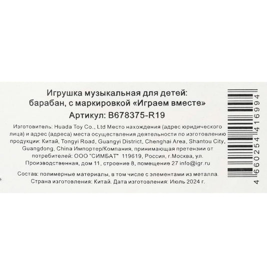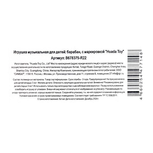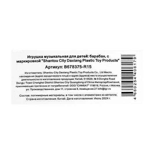 Барабан цвет а ассорт. 3009TT en couleur. dans кор.24шт