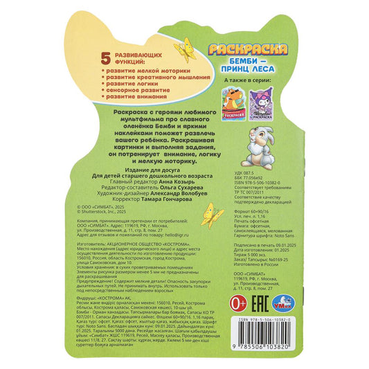 Бемби-принц леса. Раскраска с развивающими заданиями. 145х210 mm. 16 pièces. Умка в кор.50шт