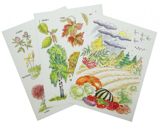 Беседы с ребенком.Осень (complexe pour le jeu professionnel avec 12 cartes avec texte sur l'objet, dans le paquet, А5)