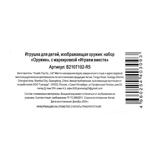 Бластер на бат. свет+звук, blister ТМ "ИГРАЕМ ВМЕСТЕ" dans кор.2*30шт