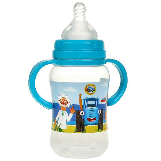 Бутылочка для корм., шир. г., СИНИЙ ТРАКТОР 270 мл, сил. с, с руч. Умка в кор.12шт