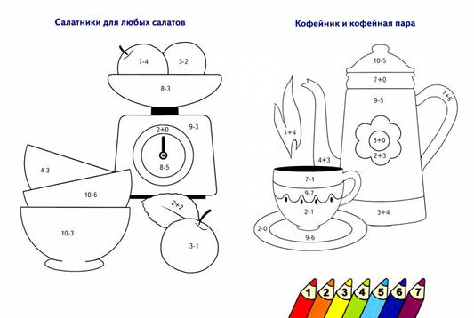Считаем и раскрашиваем. Раскраска. Посуда.
