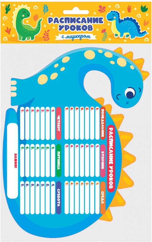 Планер магнитный РАСПИСАНИЕ УРОКОВ с маркером. ДИНОЗАВРИК