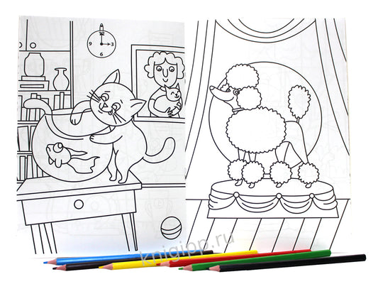 РАСКРАСКА С КАРАНДАШАМИ. КОШКИ И СОБАКИ