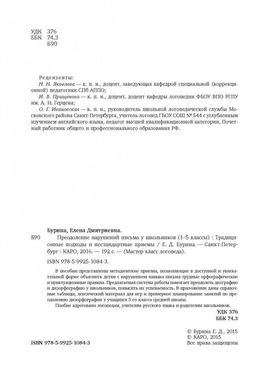 Преодоление нарушений письма у школьников 1-5 кл. Традиционные подходы и нестандартные приемы. Бурина Е.Д.