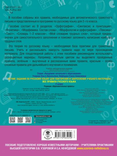 Летние задания по русскому языку. Все правила для повторения и закрепления учебного материала. 2 класс