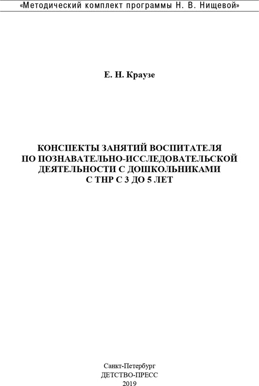 Конспекты занятий воспитателя по познавательно-исследовательской деятельности с дошкольниками с ТНР с 3 до 5 лет. (Методический комплект программы Н. В. Нищевой). ФАОП. ФГОС
