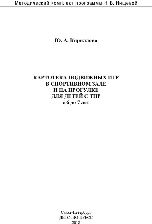 Картотека подвижных игр в спортивном зале и на прогулке для детей с ТНР с 6 до 7 лет. (Методический комплект программы Н. В. Нищевой). ФГОС