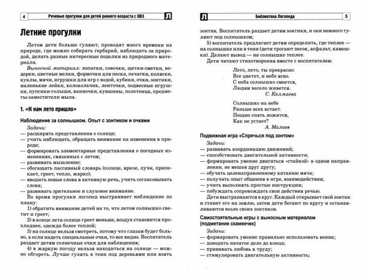 Речевые прогулки детей раннего возраста с ОВЗ Ч.1 (лето,осень)/Ильина О.В., Силантьева Н.В., Щурова К.М., Кузнецова Г.В.