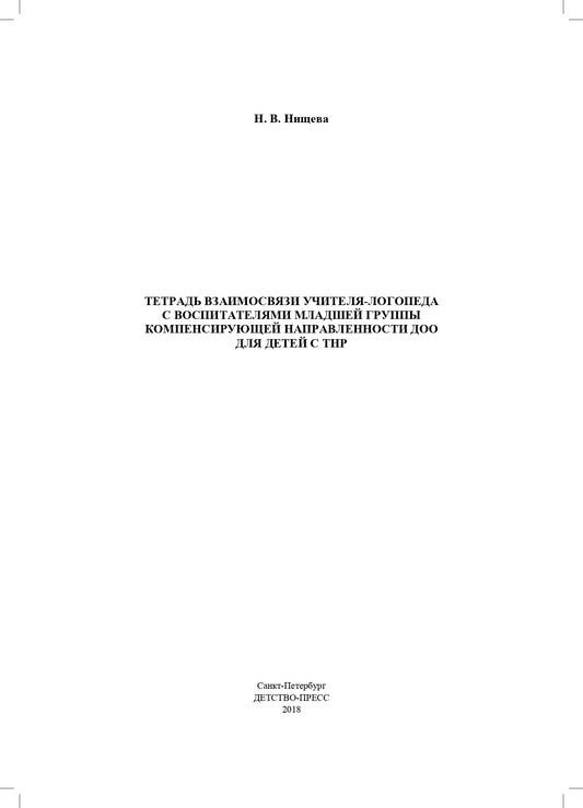 Нищева. Тетрадь взаимосвязи учителя-логопеда с воспитателями младшей группы компенсирующей направленности ДОО д/детей с ТНР.(ФГОС)