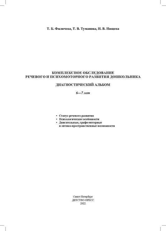 Филичева. Комплексное обследование речевого и психомоторного развития дошкольника. Диагностический альбом. 6-7 лет. ФАОП. (ФГОС)