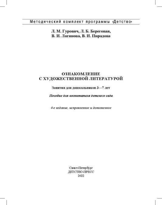Ознакомление с художественной литературой. Занятия для дошкольников 3-7 лет: пособие для воспитателя детского сада. 4-е изд., испр.и доп