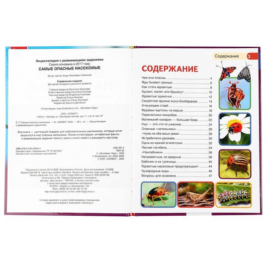 "УМКА". САМЫЕ ОПАСНЫЕ НАСЕКОМЫЕ. ЭНЦИКЛОПЕДИЯ А4 С РАЗВИВАЮЩИМИ ЗАДАНИЯМИ. 197Х255ММ 48СТР dans 15шт