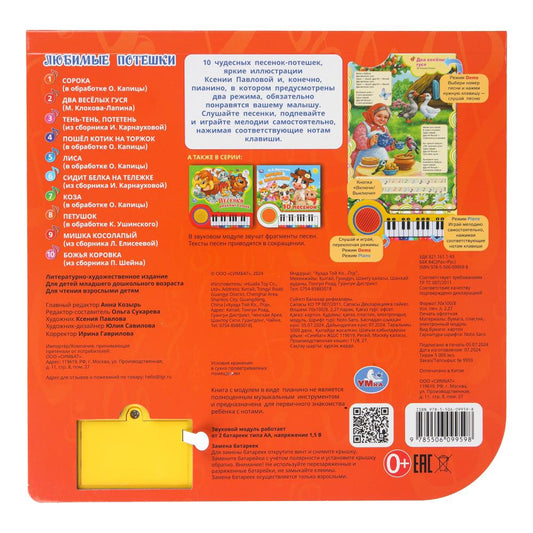 Любимые потешки (кн.-пианино, 23 кн, 10 пес) 260х255мм 14стр Умка в кор.16шт