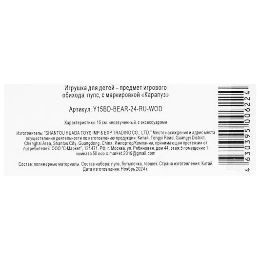 Пупс неозвуч 15см, пьет, писает, 2акс КАРАПУЗ в кор.84шт