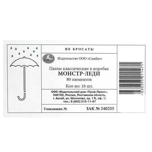 Монстр-леди. Пазлы классические в коробке. 80 pièces. 130х90х25 mm. Умные игры в уп.16шт в кор.8уп