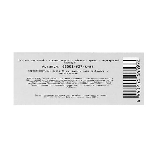 Кукла 29см кукла, руки и ноги сгиб., акс, кор КАРАПУЗ в кор.24шт