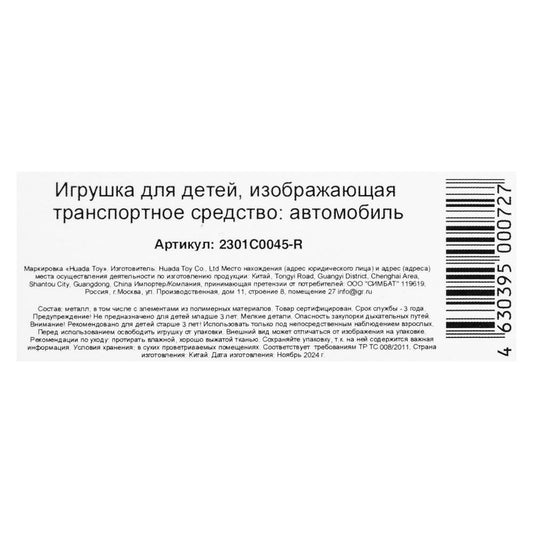 Машина металл свет-звук АУРУС СЕНАТ 13,5 см см, двери, инерц, черный, кор. Parc technologique dans le cor.2*36шт