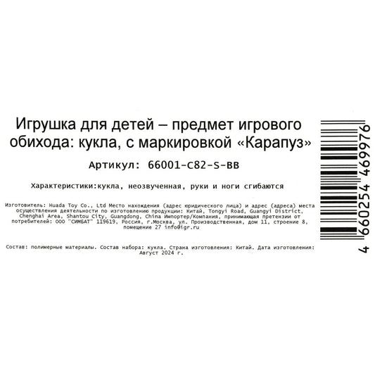 Пупс озвуч Шаинский музыка 20см, пьет, писает, закр. verres, 3акс КАРАПУЗ в кор.24шт