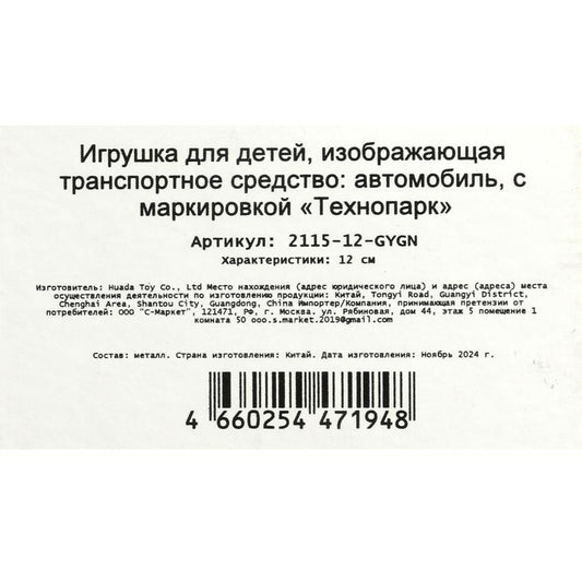 Machine en métal vaz-2115 "samarra" d'une longueur de 12 cm, double, sero-zeleny, cor. Parc technologique dans le cor.2*36шт
