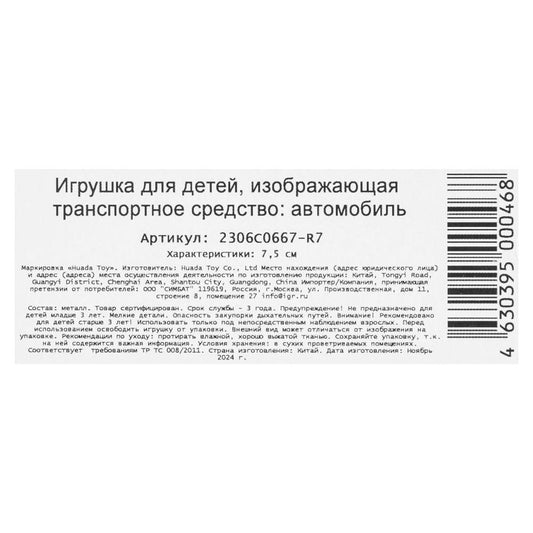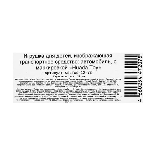Machine en métal KIA seltos pour 12 cm, double, bagage., inerce, jaune, cor. Parc technologique dans le cor.2*36шт