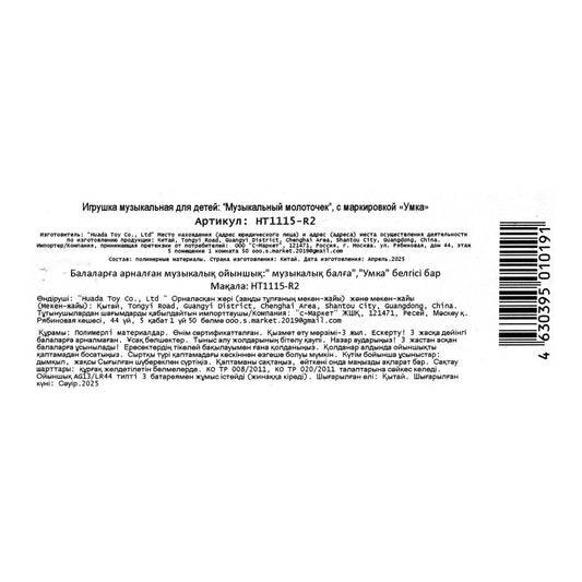 Музыкальный молоток 10 песен и звуков в кор. Умка в кор.58шт