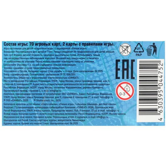 Activité. Jeu de cartes 92x130x22 mm. Jeux de cartes en cor.100шт