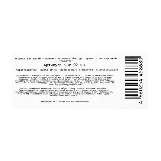 Taille 20 cm, à l'écran КАРАПУЗ dans kor.2*72шт