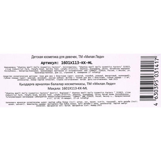 Косметика ДЛЯ ДЕВОЧЕК набор косметики: тени с блестками, помада МИЛАЯ ЛЕДИ в кор.2*96шт