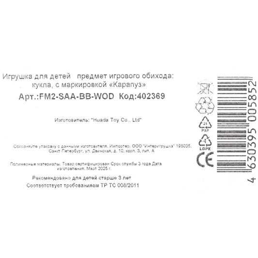 Un mini plan de 30 pièces, mis à disposition et emballé dans un blister. Умка в кор.96шт
