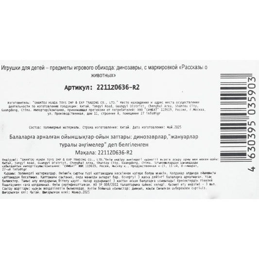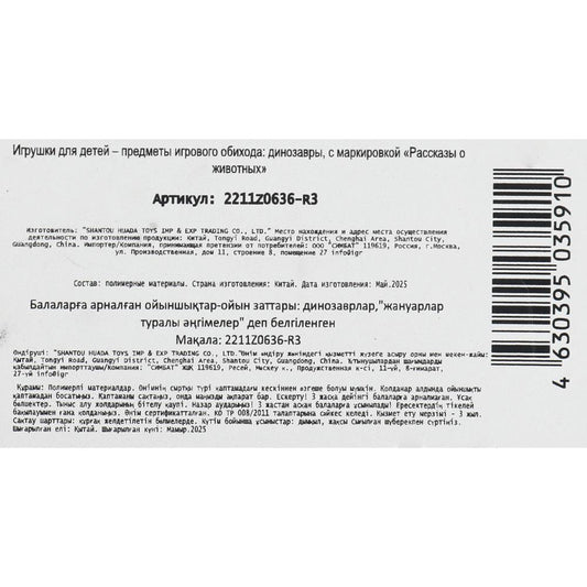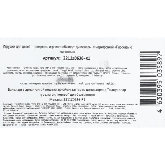Jeu de plastique ДИНОЗАВРЫ 4 pièces/paquet, plus les Russes que les hommes dans le cor.2*96