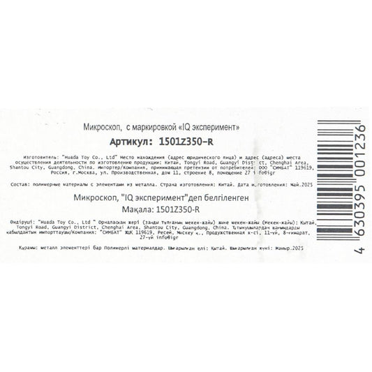 Игрушка опыты микроскоп, кор. 24*18,5*9 cm IQ expérience en cor.2*24шт