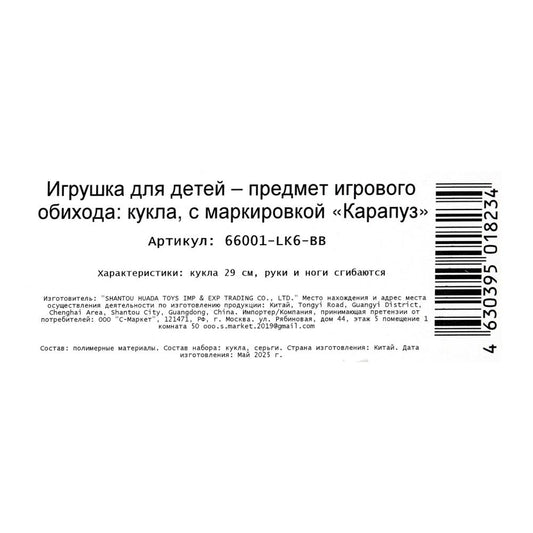 Набор кукол София, руки и ноги сгиб., кор. КАРАПУЗ в кор.24шт