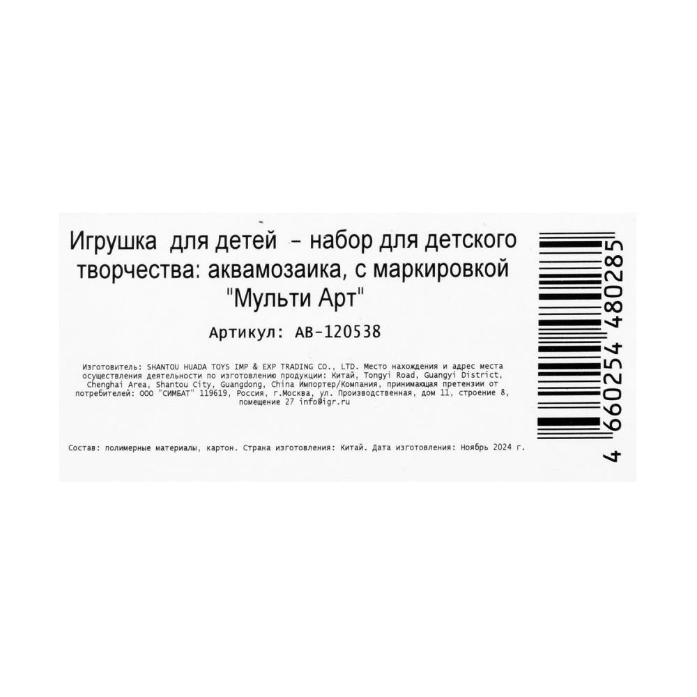 Le jeu "Аквамозаика 200 бусин мистические единороги МУЛЬТИ АРТ в кор.48шт". Taux : 0,0189.
