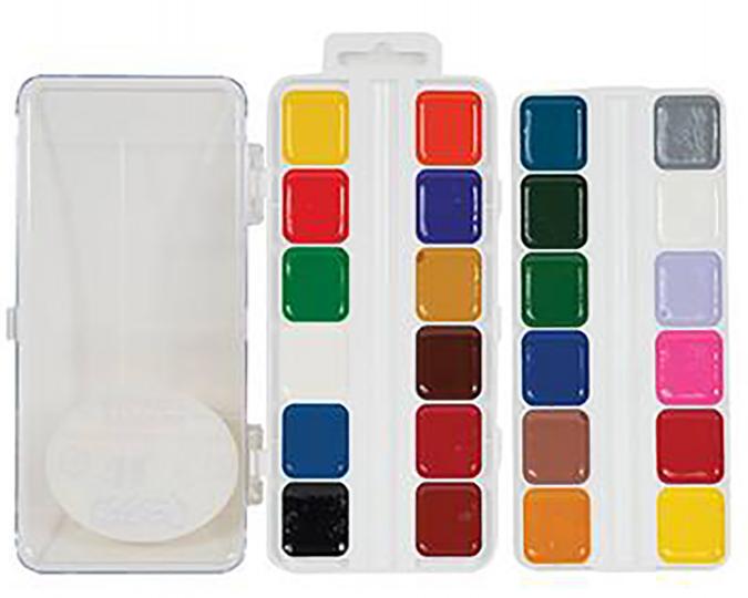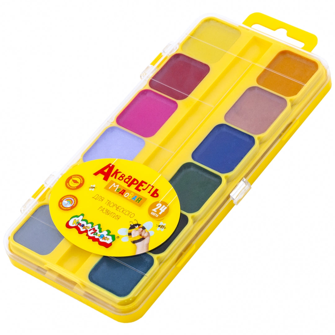 Акварельные краски Каляка-Маляка® - это профессиональное качество, адаптированное для малышей. Детская акварель Каляка-Маляка® имеет идеально подобранную цветовую гамму, необходимую для развития творческих способностей ребенка. С ее помощью малыш учится пользоваться палитрой, определять теплые и холодные цвета.В наборе 24 ярких насыщенных цветов. Краски быстро высыхают и не портятся со временем.Кисть в набор не входит.Изготовлены на основе натуральных компонентов, не содержат токсичных веществ. Безопасны при использовании по назначению.Сделано в России.