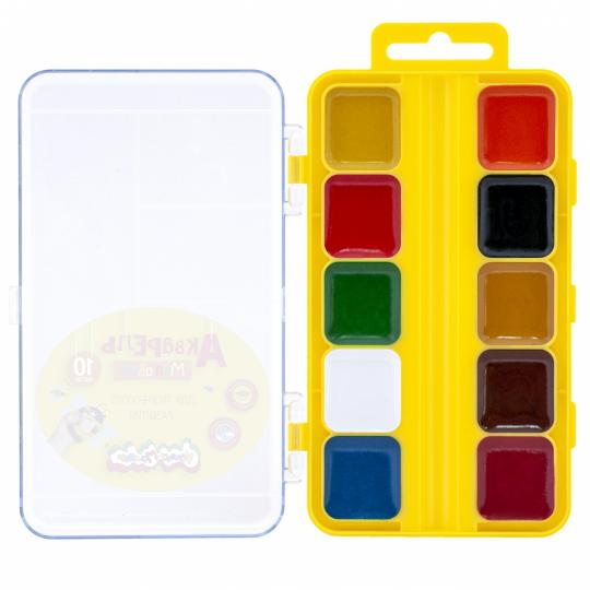 Акварель 10цв квадр. кювет без кист.,АМККМ10Е