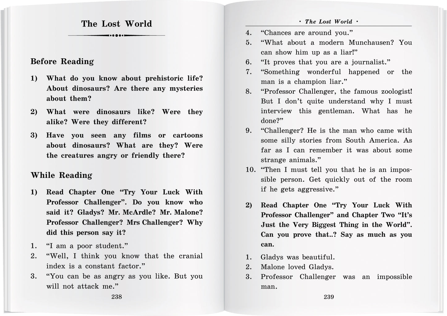 Handling time: 24 days Книга знакомит читателя с творчеством известного английского писателя Артура Конан Дойла. Тексты его произведений - "Затерянный мир" и рассказы о Шерлоке Холмсе - адаптированы с учетом уровня владения языком учащимися 5-6 классов. На страницах книги вы встретитесь со знакомыми персонажами - профессором Челленджером и его командой, узнаете, где можно встретить настоящих динозавров и сможете проследить за раскрытием таинственных преступлений.