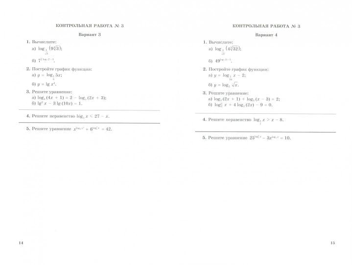 В пособии приведено примерное планирование курса алгебры и начал математического анализа для 11-го класса (базового уровня) и контрольные работы в четырех вариантах по всем темам курса. Каждая работа имеет три уровня сложности.