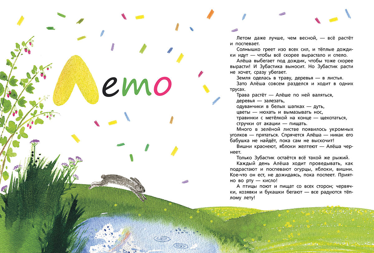 Handling time: 24 days Аннотация к книге "Алешин год" Третьяков Ю. Ф.:Алёше всего пять лет. Его родители уехали работать на Север, и он живёт у бабушки в деревне Ушинка с котёнком Зубастиком и друзьями: стариком-кумом, Алёнкой да Васильком. А у маленького человека год большой — ни один день не похож на другой! И весна, и лето, и осень, и зима наполнены множеством удивительных открытий, интересных приключений и, конечно же, важных уроков!Небольшие рассказы Юрия Третьякова для самых маленьких проиллюстрировала Ольга Фадеева, в ярких иллюстрациях которой оживают озорство и красочный мир детской фантазии. Читать дальше…