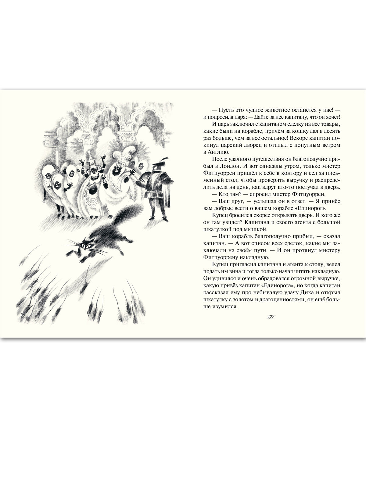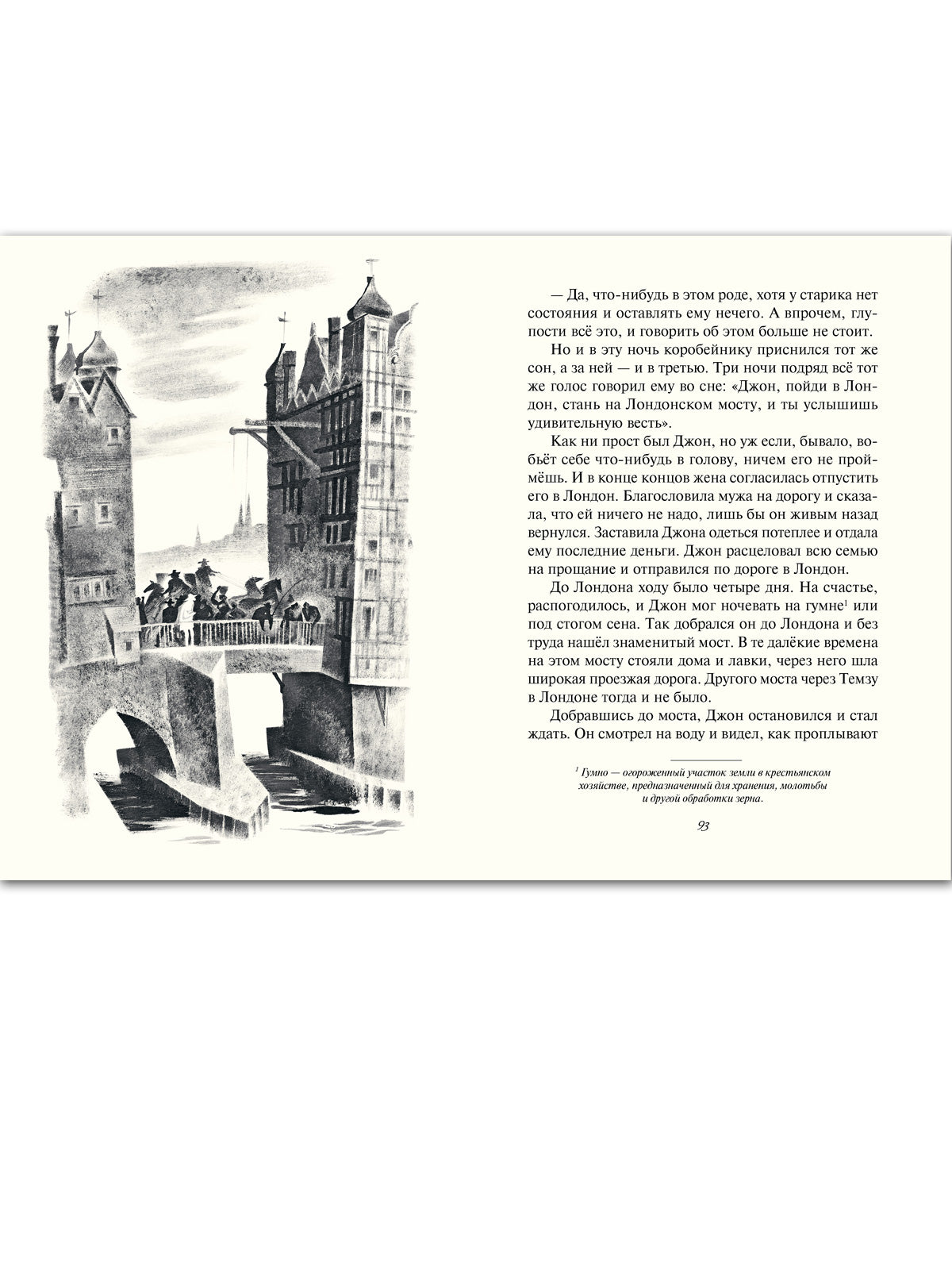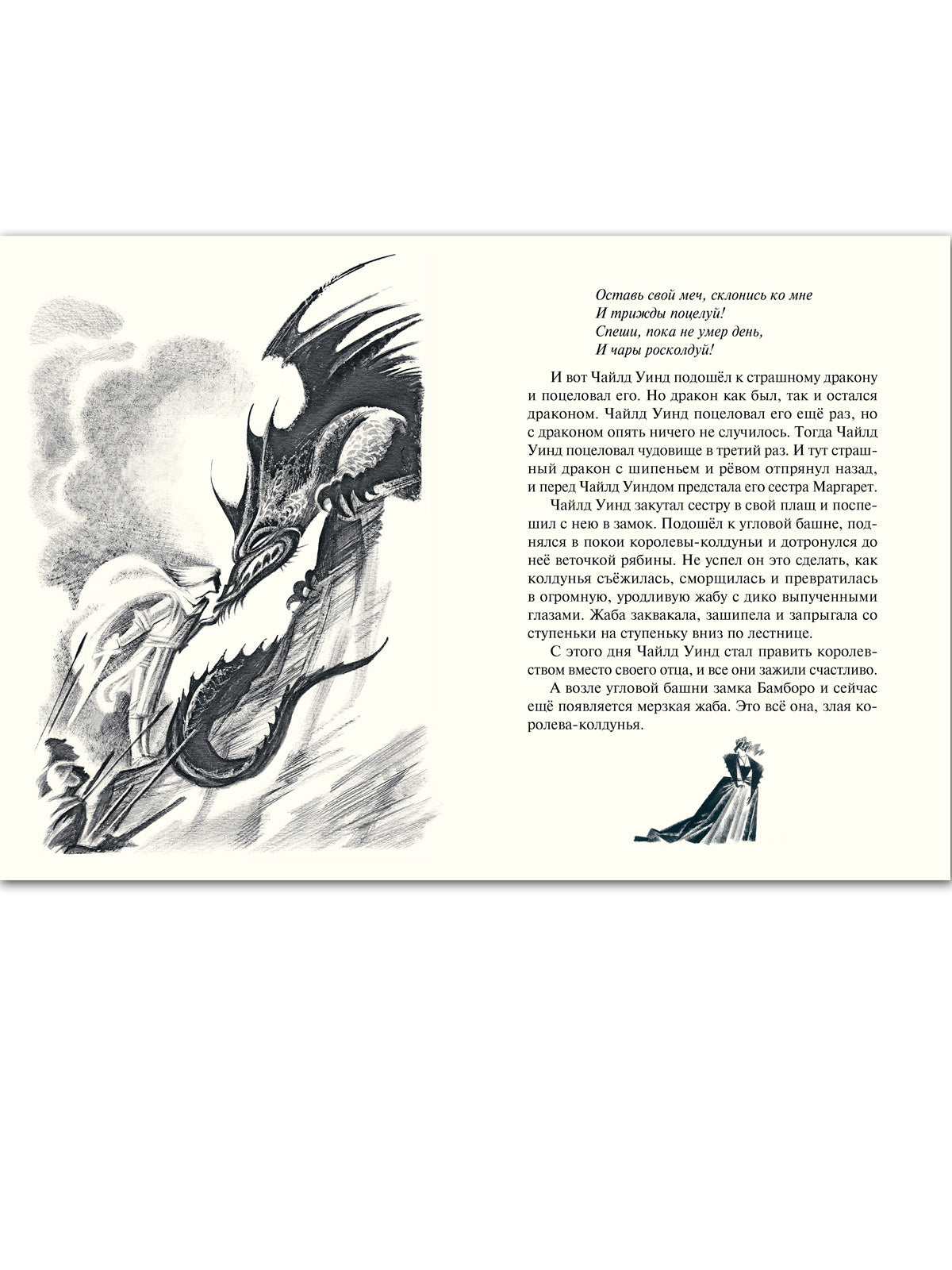 Handling time: 24 days Говорят, что в английской столице люди только и делают, что поют да танцуют, и что все улицы в Лондоне вымощены чистым золотом. А ещё в каждом приличном английском доме живёт домовой — брауни, а замками владеют великаны — иногда даже трёхголовые! Волшебные существа (эльфы и злые волшебницы, драконы и кошачьи короли) и вполне реальные люди (короли, аббаты, лорд-мэры Лондона) сосуществуют не только в текстах сказок, но и в рисунках Ники Гольц. Англия у художницы, вопреки представлениям об этой стране, не выглядит чопорной и сдержанной. Наоборот — английские истории и легенды в интерпретации Гольц многослойны, невероятно динамичны и даже драматичны. Но ошибиться и не угадать, что перед читателями именно английские сказки и предания, невозможно. У Ники Гольц даже три медведя живут в старинном особняке и выглядят как английские лорды. Перевод с английского Натальи Шерешевской Содержание Биннори Волшебная мазь Волшебный рог Рыжий Эттин Дочь графа Мара Джек и бобовый стебель Тростниковая Шапк Домовой из Хилтона Ученик чародея Джек — Победитель Великанов Король Иоанн и кентерберийский аббат Сон коробейника Мистер Фокс Молли Ваппи Кошачий король Три медведя Чайлд Роланд Том-Тит-Тот Чёрный Бык Норроуэйский Страшный дракон скалы Спиндлстон Дик Уиттингтон и его кошка