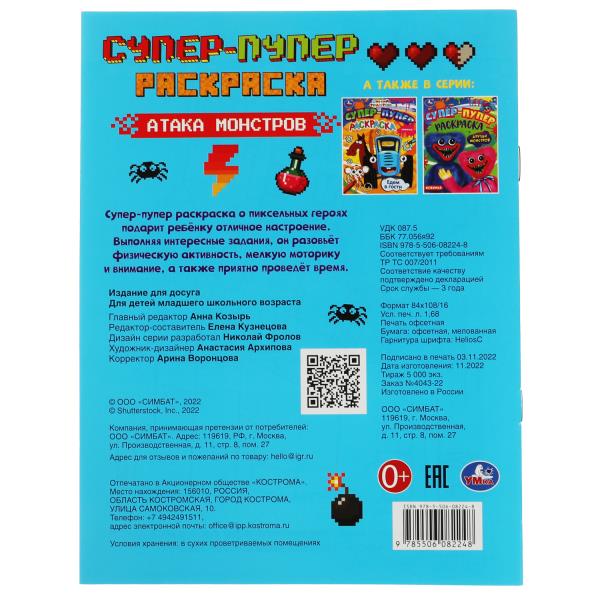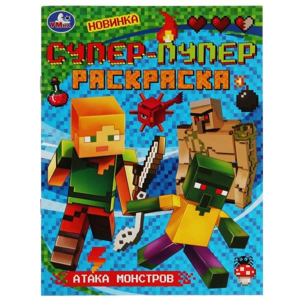 Атака монстров. Super-puper раскраска. 195х255 mm. Скрепка. 16 pièces. Умка в кор.50шт