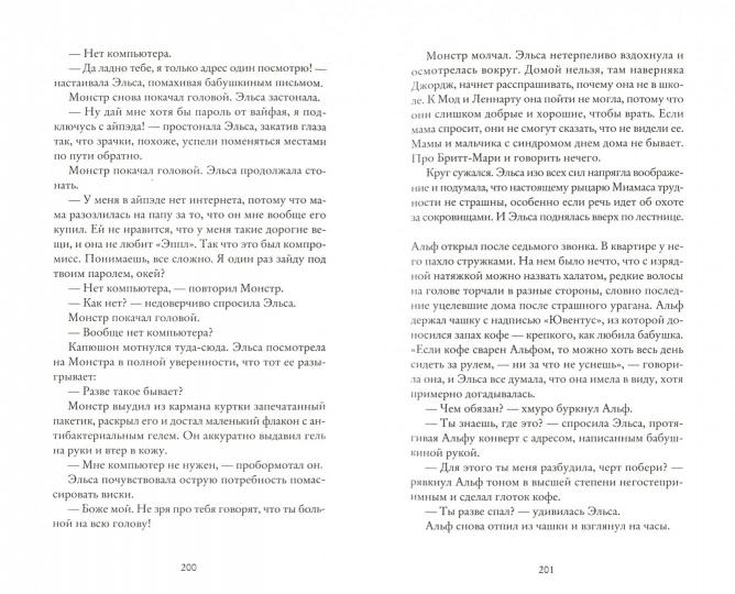 Handling time: 19 days Эльзе семь, и она непохожа на других семилетних девочек. Ее бабушке семьдесят семь, и она тоже непохожа на других бабушек. Ведь мало какой бабушке взбредет в голову флиртовать с полицейским или сбежать из больницы, чтобы залезть в вольер к обезьянам. Но бабушка – лучший и единственный друг Эльсы. Каждую ночь они вместе отправляются в Просонье – удивительную страну, где время измеряется вечностями и сказками и никто не должен быть «нормальным». Однажды бабушка уходит в Просонье навсегда, оставляя Эльсе только письма. Их нужно передать тем, у кого бабушка хочет попросить прощения за свои ошибки. Эльсе предстоит узнать, что герои и чудовища живут не только в сказочных королевствах.